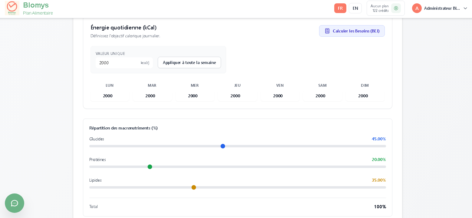 - Objectifs Chiffrés (Kcal, Macros)